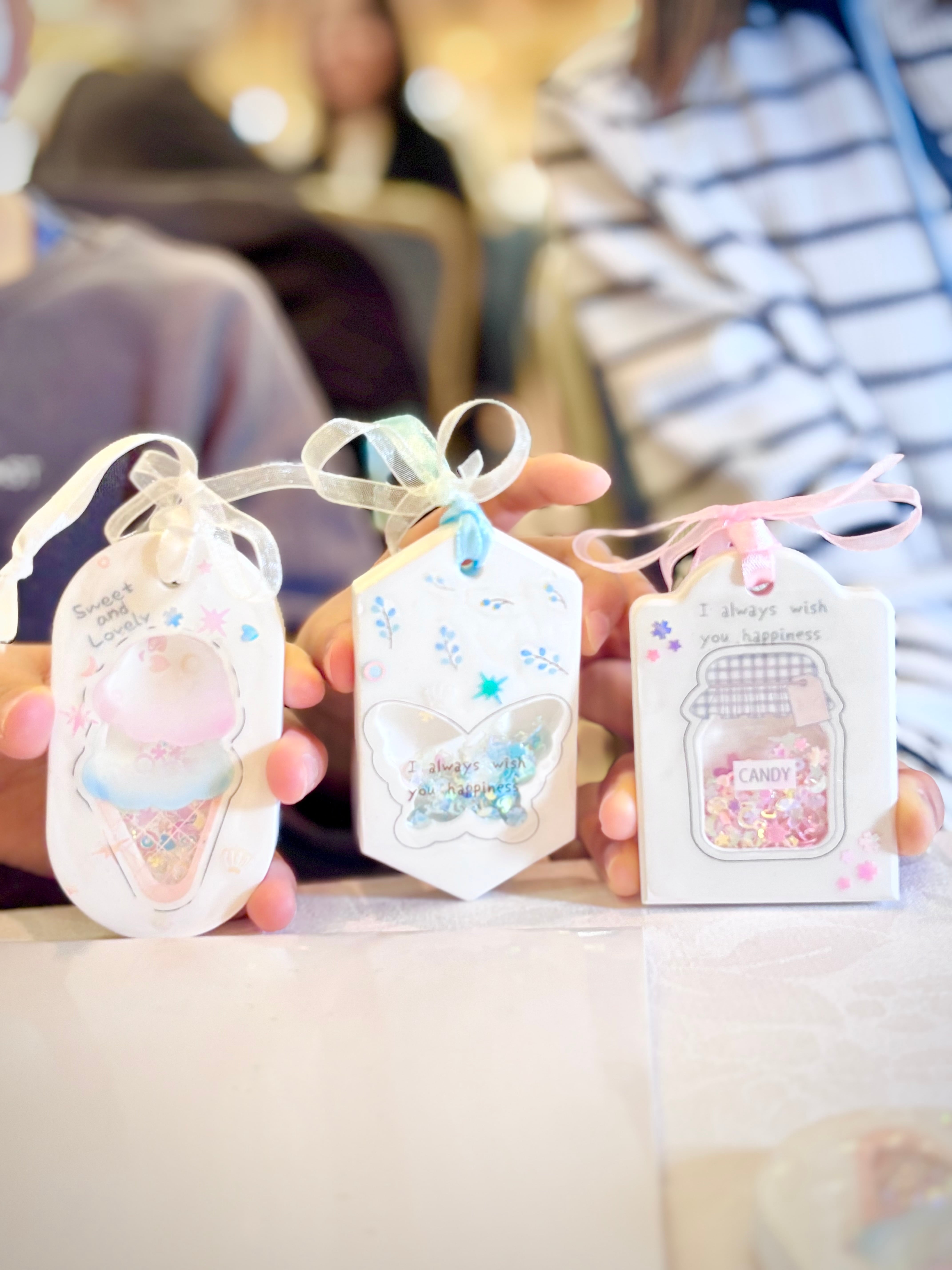 パーツを組み合わせて仕上げた後は、レジンでツヤツヤにコーティング。